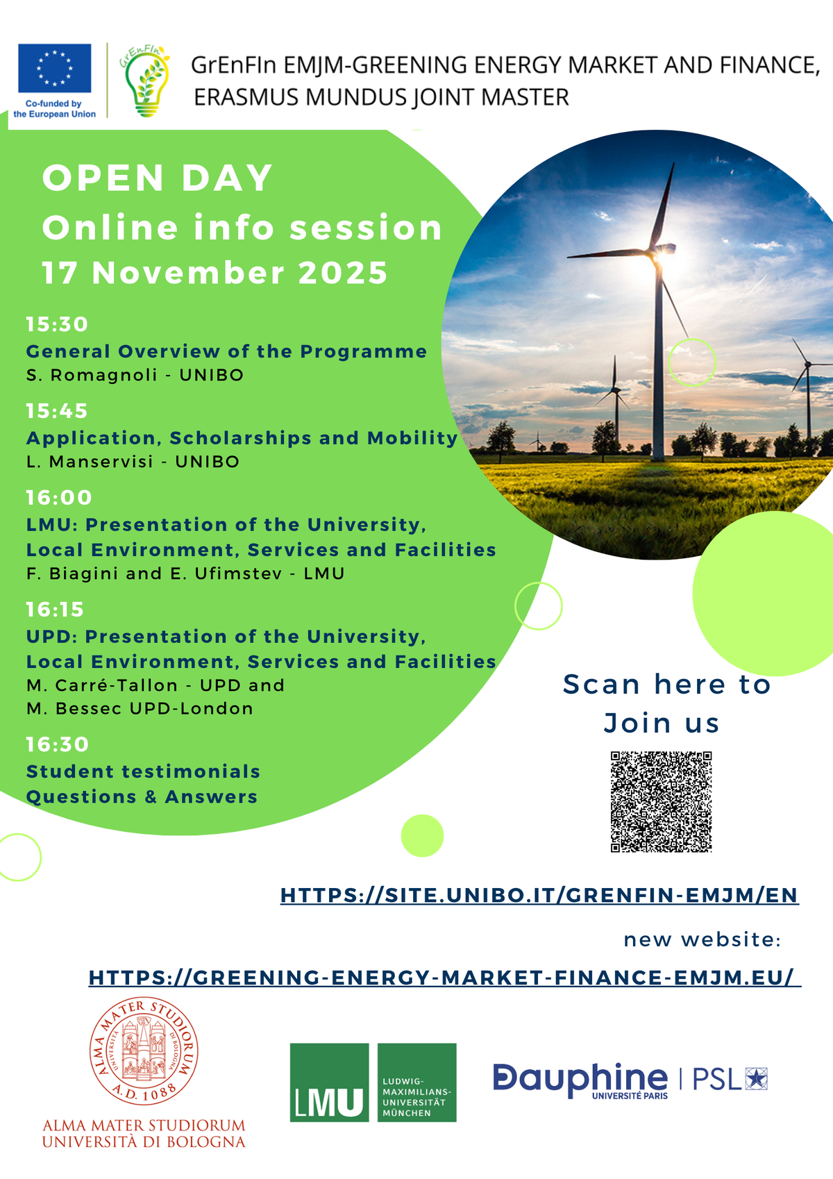 GrEnFIn Erasmus Mundus Joint Master - Open day November 17th