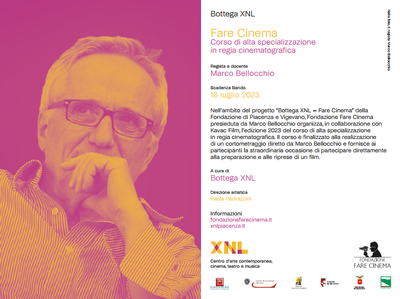 Nell’ambito del progetto “Bottega XNL – Fare Cinema” della Fondazione di Piacenza e Vigevano, Fondazione Fare Cinema presieduta da Marco Bellocchio organizza, in collaborazione con Kavac Film, l’edizione 2023 del corso di alta specializzazione in regia cinematografica denominato Fare Cinema.