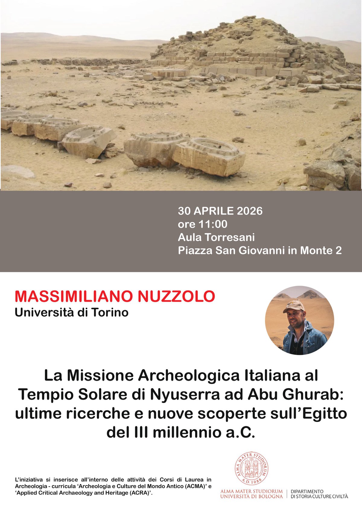La Missione Archeologica Italiana al Tempio Solare di Nyuserra ad Abu Ghurab: ultime ricerche e nuove scoperte sull’Egitto del III millennio a.C.
